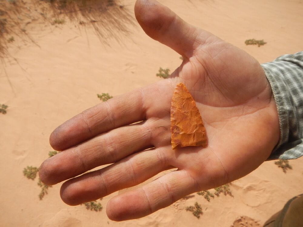 Speer und Pfeilspitzen halten sich hier an der Oberfläche für für viele viele Jahre. Diese könnte zwischen 300 und mehreren 1000 Jahren alt sein.